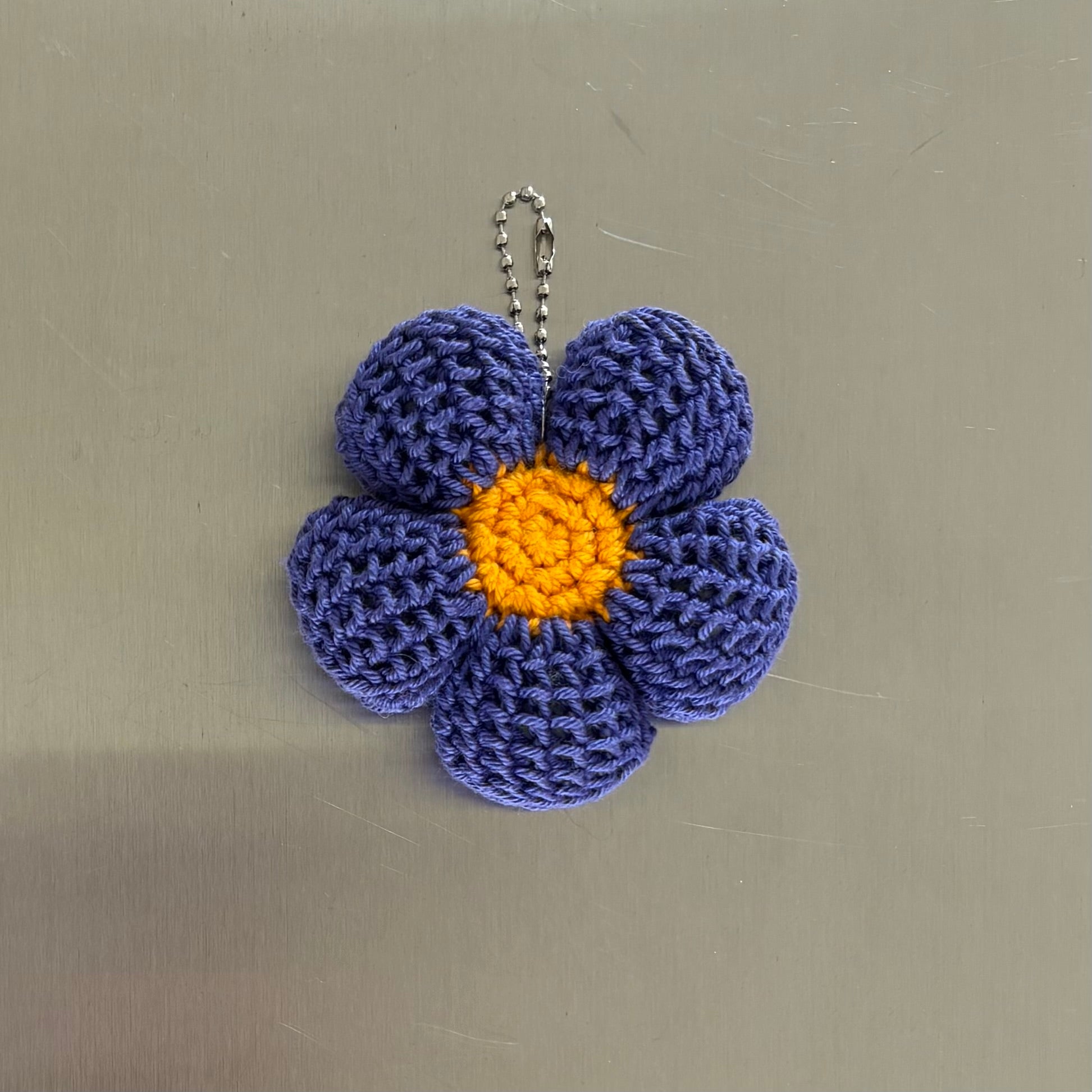 Porte-clés en forme de fleur en 100% coton, fait à la main. Il peut être utilisé en porte-clés ou alors en charms pour sac par exemple.