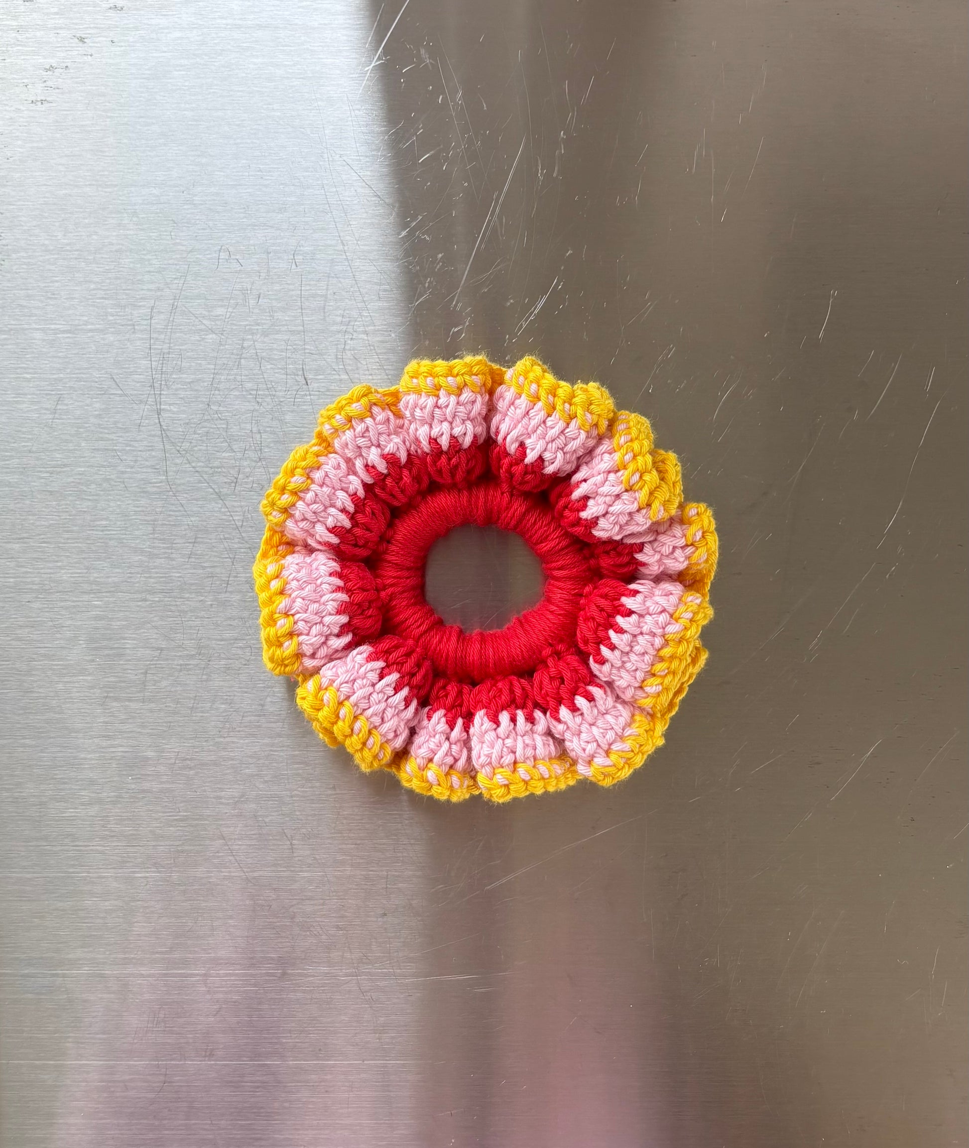 Chouchou pour cheveux en crochet fait à la main 100% coton, avec un élastique à l'intérieur. Parfait pour illuminer vos coiffures.